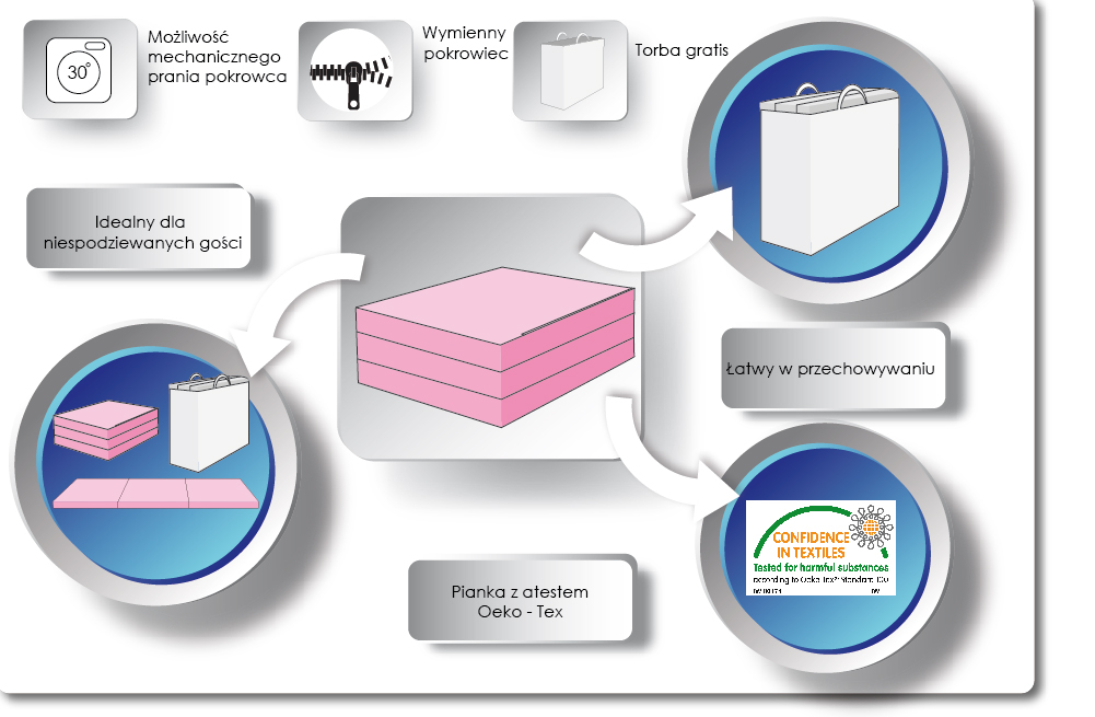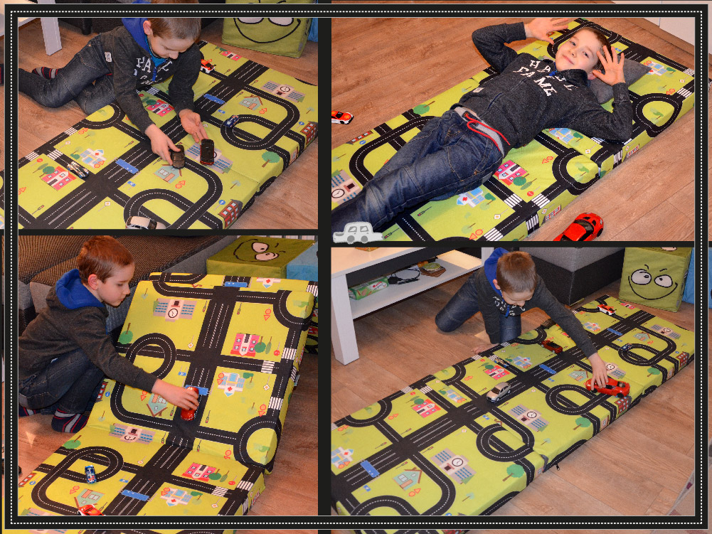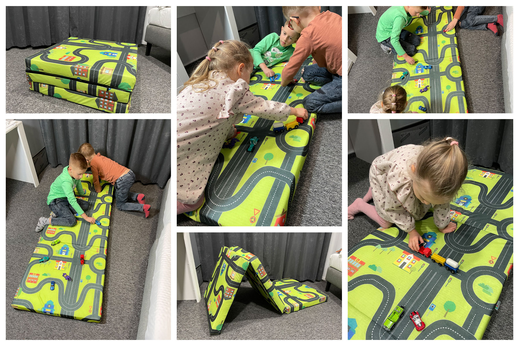 Materac rozkłada się błyskawicznie i w jednym ruchu z łóżka zmienia się w fascynujące miejsce zabawy :