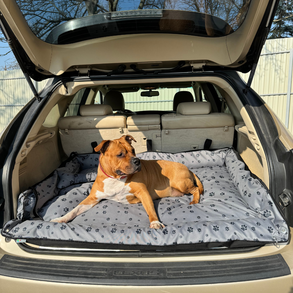 Legowisko Oksana Łapki w imponującym rozmiarze XL (120x90cm; szerokość boku 20cm) zapewnia maksymalny komfort i przestrzeń dla największych ras psów lub dla kilku mniejszych przyjaciół razem. Solidne rzepy pozwalają na pewne przymocowanie legowiska do dywanika bagażnika w samochodzie, co sprawia, że nawet podróże staną się łatwe i bezpieczne dla Twojego pupila.